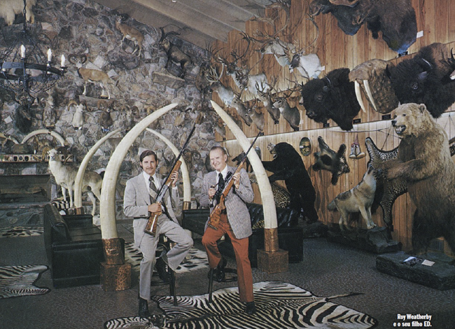 Mas além de procurar a máxima eficácia com os calibres, Roy Weatherby também procurava a carabina perfeita, até por que os seus calibres exigiam ações e ferrolho fortes o suficiente para suportar as elevadas pressões. Durante algum tempo a casa Weatherby, localizada na Califórnia, oferecia aos seus clientes carabinas “custom” (personalizadas) com base em ações (caixa de culatra/ferrolho) Mauser fabricadas pela belga FN. Em 1956 inicia um contrato com a finlandesa Sako que continua a fabricar as carabinas Weatherby com base nas ações FN/Mauser. Mas o senhor Weatherby continuava a trabalhar no desenvolvimento de uma carabina ainda melhor em ainda em 1956 propõe à firma dinamarquesa Schultz & Larsen o fabrico de algumas carabinas no calibre .378 Weatherby Magnum com base na ação Model 54 deste fabricante. Mais foi em 1958, depois de vários anos de desenvolvimento, que Roy Weatherby chegou à “perfeição” com a sua ação/ferrolho orginal Mark V, preparada para suportar pressões superiores a 100.000 PSI (!). A arma tornouse um sucesso e a Weatherby teve de procurar um novo parceiro para a produção, que foi nem mais nem menos do que a prestigiada casa alemã J. P. Sauer & Sohn. Na época as carabinas Weatherby distinguiam-se facilmente pelas suas coronhas com crista Monte Carlo. A carabina Mark V continua a ser considerada a ação mais resistente alguma vez fabricada, conta com um ferrolho de 9 trincos e ficaram famosas as Weatherby/Sauer no calibre .460 Weatherby Magnum, o calibre para arma e ferrolho mais potente do mundo! A Weatherby não quis de deixar de oferecer uma opção para os calibres “não-Weatherby” criando a linha de carabinas Vanguard, disponível nos calibres mais populares standard e Magnum “normais”. Todas as carabinas Weatherby saem de fábrica com garantia sub-MOA. Atualmente a oferta da casa Weatherby é consideravelmente vasta, passando pelas caçadeiras, acessórios para armas, tiro, etc. Em 1983 Roy Weatherby (faleceu em 1988) entregou ao seu filho Ed a liderança da empresa que em 2020 comemorou o seu 75º aniversário.
