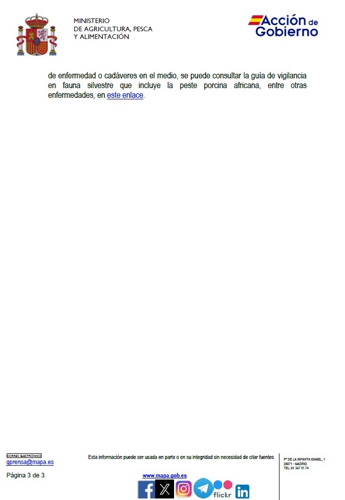 Simultaneamente, foi criada uma Zona de Vigilância – 10 km em redor do foco – onde se praticará ações de caça sanitária, direcionada a reduzir drasticamente as populações de javalis e onde todos os animais abatidos serão analisados.