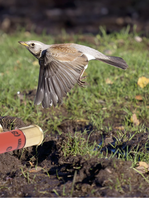…mas sim de como é utilizado esse chumbo. Aqui radica o equilíbrio destes calibres, já que não se trata de lançar a maior carga de chumbo possível para assim “assegurar” cada peça de caça atirada (um erro pelo qual a maioria de nós passou), mas sim de utilizar cargas adequadas para o fazer. Se mudarmos a nossa forma de ver este aspeto – da carga adequada –, rapidamente nos parecerá disparatado caçar às codornizes com 32 gramas em calibre 12 e mesmo com 28 em calibre 20, menos carga será suficiente. Como estamos a falar de tordos, atirar com 30 ou 32 gramas de chumbo poderá inclusive parecer injustificado – muito menos com 36, como há quem o faça… – e o excesso de carga apenas esconde o medo de errar e a necessidade de matar muito. Não se trata de disparar com maior carga para conseguir ter uma jornada de caça com maior rendimento, mas sim de o fazer de forma equilibrada. No caso dos calibres 28 e .410 podemos encontrar bons cartuchos para caçar tordos entre os 15 e 22 gramas, e com estas cargas não teremos qualquer problema em cobrar pássaros. Onde encontramos o equilíbrio? Bem, isso é outra conversa… e na nossa opinião será entre os 15 e 19 gramas de chumbo, mais do que suficiente para cobrar tordos à passagem na maior parte dos dias de caça. Não se trata da quantidade de chumbo, mas sim de como essa carga é utilizada. Disparando com chokes mais fechados com o calibre .410, utilizando as cargas referidas, vamos ter um cartucho ideal para passagens de tordos com boas condições, ou seja, com os pássaros a voarem a uma altitude razoável – entre 25 e 30 metros. Este calibre oferece composições de tiro muito boas quando atiramos com cargas entre os 15 e 19 gramas. Se optarmos pelo 28, vamos descobrir um calibre de grande equilíbrio e que será uma maravilha com cargas de 21 gramas e chokes de três e uma estrelas.