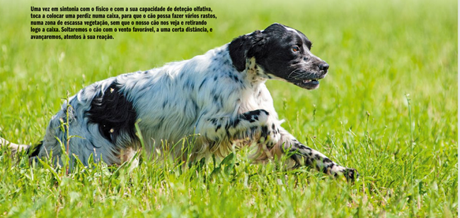 Depois, saímos para o campo sem colocarmos perdiz nenhuma. Temos de ir observando as suas reações e como se adapta diante da ausência de emanações; e será aí que iremos comprovar se é perseverante, se cresce e não deixa de procurar, ou se fica aborrecido e vem ter connosco, sintoma de que lhe falta ativação e “sede” de captura, trabalhando em consequência com mais exercícios e complicando cada vez mais os testes. Com alguns cães é importante que vejam uma perdiz a voar, num terreno onde ela consiga fugir com toda a segurança (cuidado para que ela não voe e ele a consiga apanhar). Num momento mais prudente, é a altura de ir para o campo com a espingarda, mas primeiro precisamos de fazer bem todos estes exercícios. Podemos utilizar a perdiz de várias formas durante o treino, partindo sempre do princípio de que o nosso cão não deve ver o que fazemos e como fazemos. Por isso, devemos deixar o cão no carro enquanto colocamos a perdiz, e distanciarmo-nos bastante para não deixar rasto, regressando para o tirar assim que acabarmos. Assim que terminarmos o treino, devemos retirar a caixa da perdiz (se a utilizarmos) e pôr o cão no carro novamente. Quando percebermos que, ao chegar ao terreno, o cão já quer sair para procurar o rasto, já não precisamos de usar mais a jaula ou a caixa da perdiz, porque ele já quer sair para descobrir, que é aquilo que nós queremos. Agiremos em consequência, levando-o a zonas de diferentes níveis de dificuldade e trabalhando com o vento, entrando a partir de várias direções. Rapidamente chegará o momento em que podemos ir com a espingarda, mas não se esqueçam de fazer bem esta fase do treino.